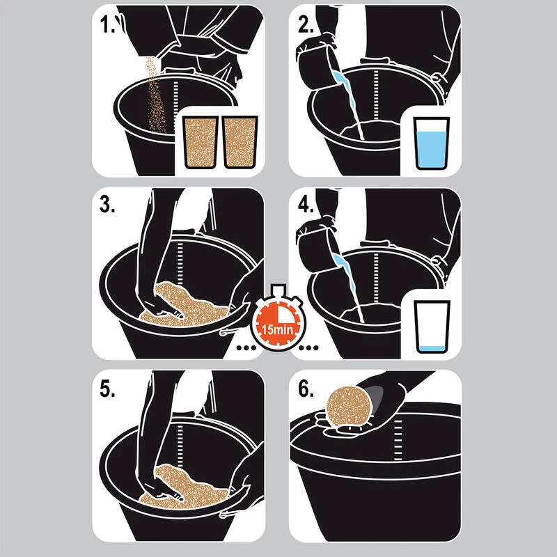 On laisse ensuite l’amorce se reposer pendant 15min, puis on vide le reste d’eau pour arriver à un mouillage qui vous permettra de faire des boules.