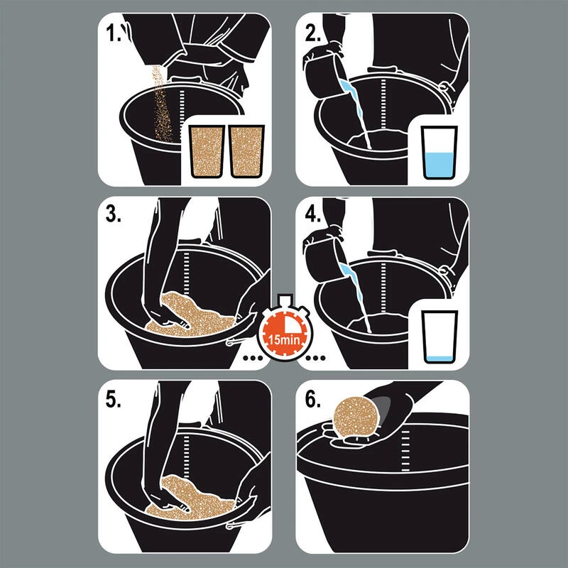 On laisse ensuite l’amorce se reposer pendant 15min, puis on vide le reste d’eau pour arriver à un mouillage qui vous permettra de faire des boules.