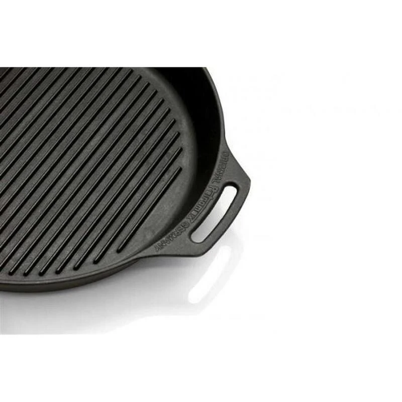 Une magnifique poêle en fonte Petromax avec une poignée. Dotée d’une surface nervurée. Diamètre de 30 cm. Pèse 4 kg.